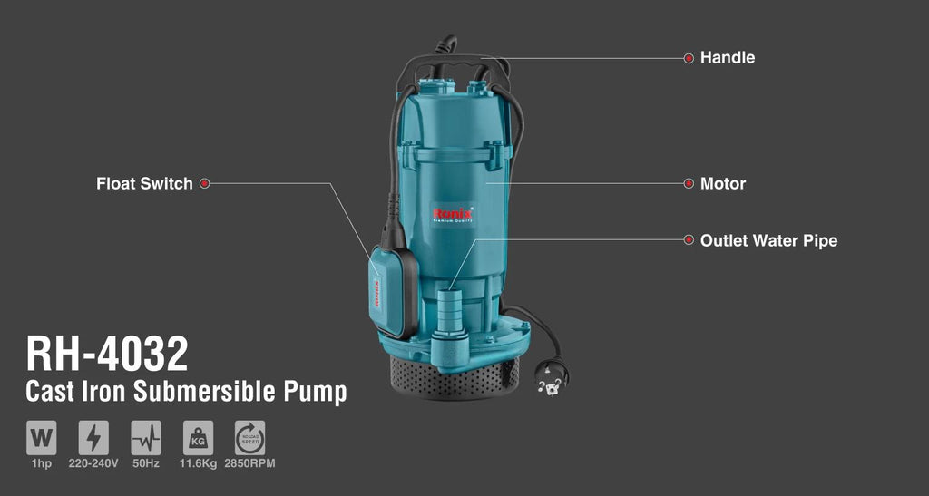 Dränkbar vattenpump i gjutjärn 1 hk