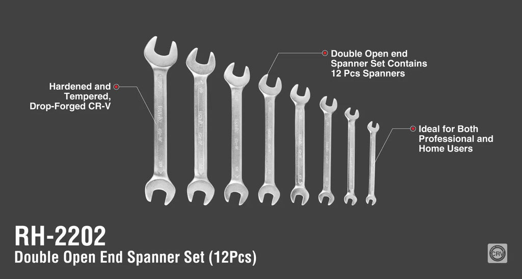 Dubbel öppningsnyckelsats 12 st Cr-V