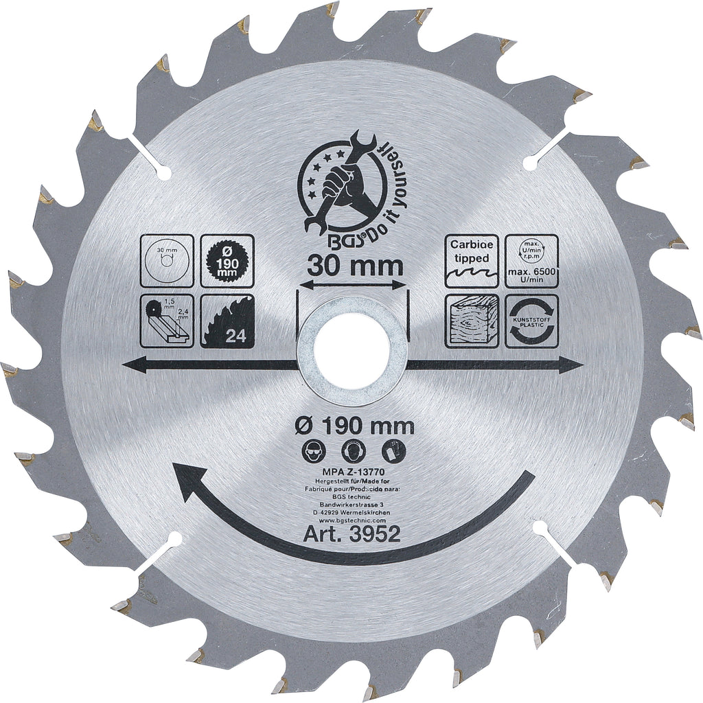 Hårdmetall-Cirkelsågblad | Ø 190 x 30 x 2,5 mm | 24 tänder