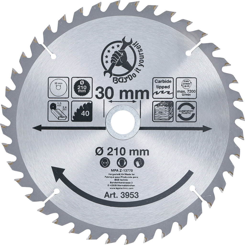 Hårdmetall-Cirkelsågblad | Ø 210 x 30 x 2,6 mm | 40 tänder