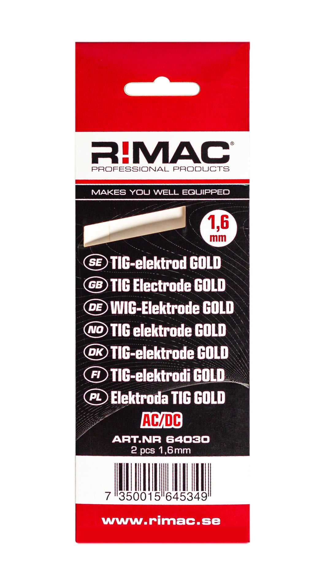 RIMAC Tigelektrod 1,6mmx2st Guld Multityp Ac/Dc
